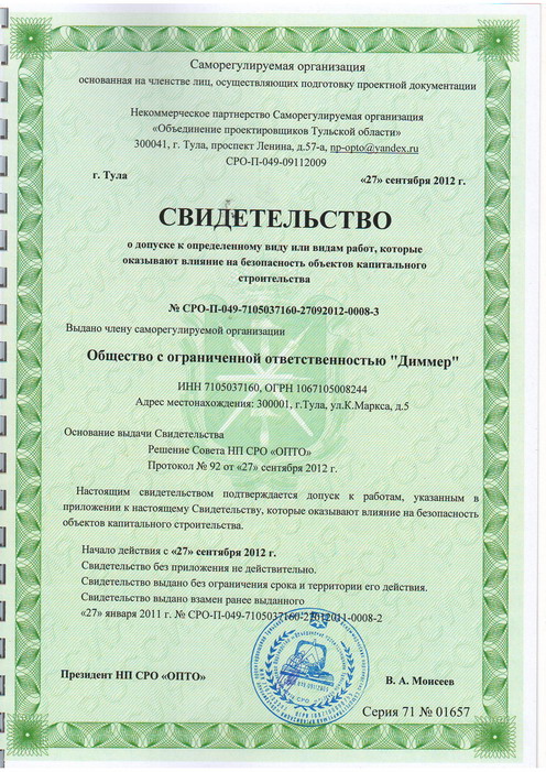 Наша компания осуществляет свою деятельность на основании свидетельства о допуске к заявленным видам работ, выданного